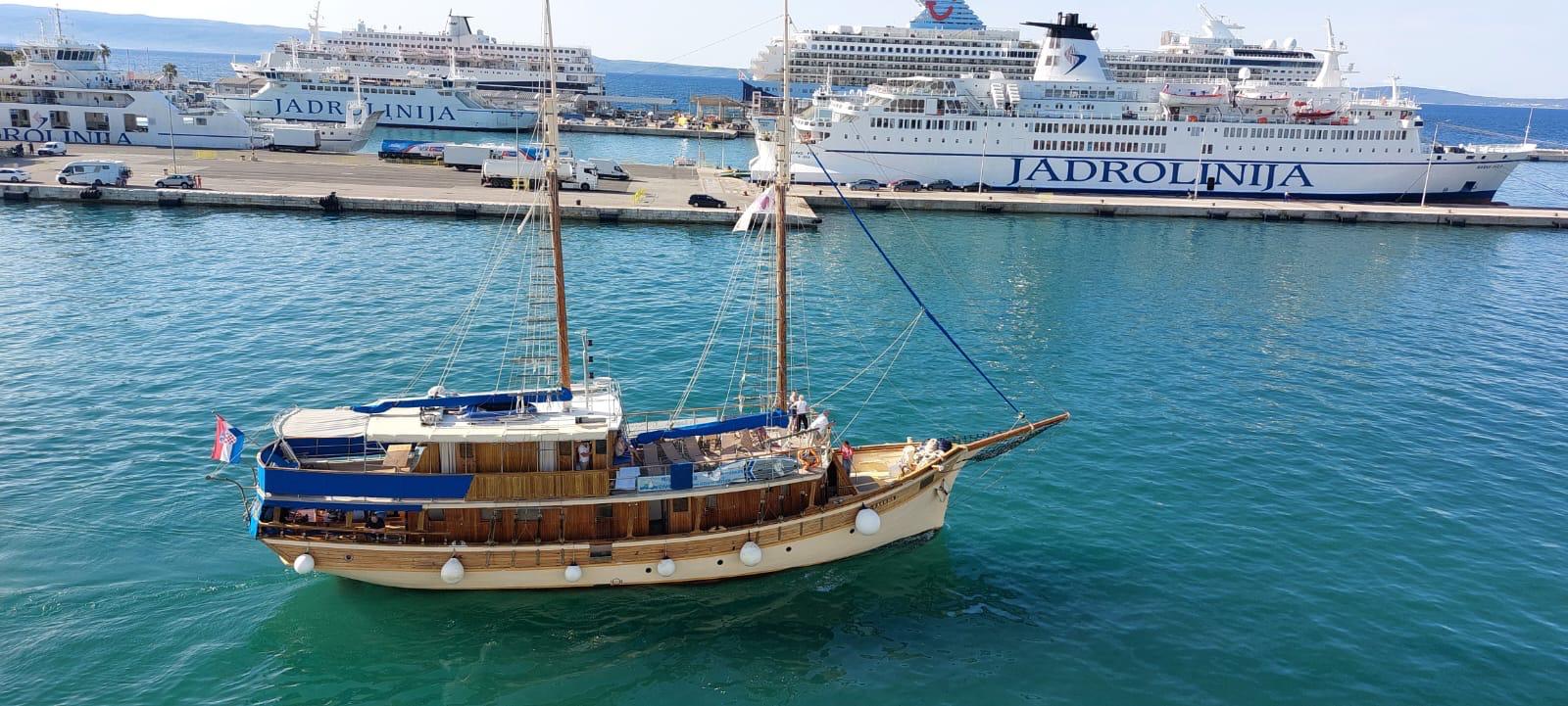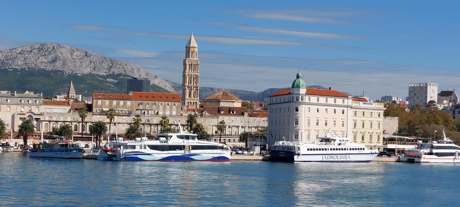 Gateway to the Islands and the Sound of Dalmatia ~ Split serves as the most important maritime hub on the Adriatic. The city port is a constant hive of activity thanks to Jadrolinija, whose iconic white ferries and catamarans tirelessly connect Split with breathtaking islands like Brač, Šolta, Hvar, Korčula and Vis. As you sail into Split’s harbor with your own boat, you’ll encounter an impressive mix of vessels—from elegant yachts and mega yachts to cruise ships, ferries, passenger catamarans, traditional wooden sailing boats, and small local craft—each adding to the port’s unique character. Whether you are arriving or departing, the sight of these ships in the harbor is a distinctive part of the Split experience. As you stroll through the narrow stone streets or relax on the Riva, you’ll notice another local staple: the sound of Radio Dalmacija. Blaring from every café and car window, its music and local voices provide the rhythmic backdrop to daily life, creating that authentic Dalmatian atmosphere that visitors fall in love with.