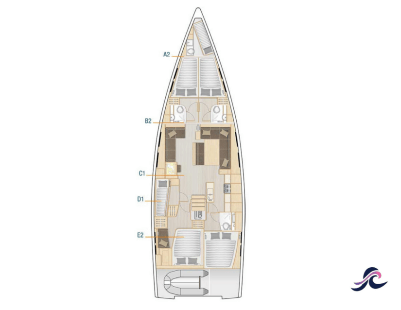 Introducing the Hanse 548, an embodiment of luxury and functionality in the world of sailing. Adele, as she is affectionately known, stands out with a spacious deck and a plush interior that accommodates up to 12 passengers across 5 cabins. The vessel's thoughtful design includes 10 berths and 2 additional berths for an enhanced level of comfort and flexibility.