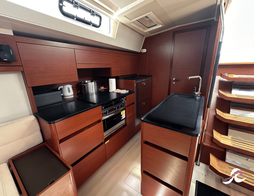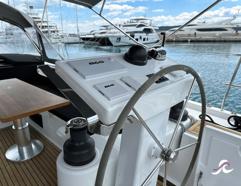 Navigating the seas with Adele is a refined experience, thanks to the integration of furling/roll technology in both the main sail and genoa. The yacht features dual steering wheels, offering precise control and ease of handling during your voyage.