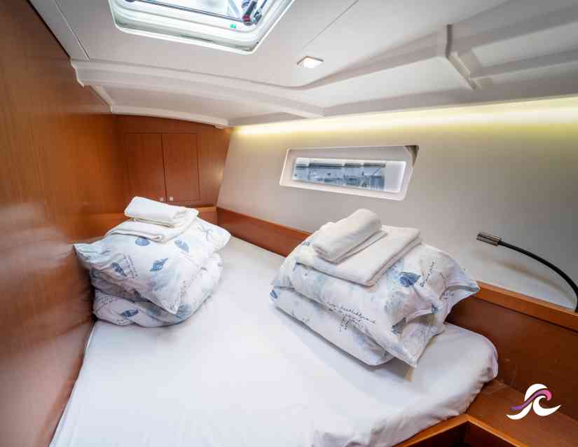 Elegant white and mahogany interior, teak deck, innovative bathing platform solution, comfort and enviable sailing performances... All of that is combined in Nesi 2