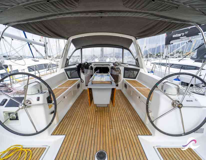 A beautiful yacht that delivers the perfect combination of performance, luxurious comfort and safety. In 2012, It was voted the « European Yacht of The Year », a very prestigious award in the nautical world. Spacious yacht featuring a teak deck and twin steering wheels which allow extra space in the aft section. It also boasts one major innovation: the aft bench transforms into a full-beam swim platform for “enjoying life on the sea to its fullest”.