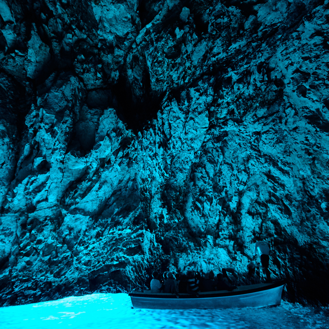 BLUE CAVE, one of the most attractive natural phenomena in the Adriatic, is located on the small island of Biševo near Vis. It is only 17 meters wide and 31 meters long. The cave is accessible through a narrow sea passage between the rocks. Sunlight comes in through an underwater opening, flooding the sea and the visitors with silver and blue colors. The only known habitat for the monk seal is right next to it.